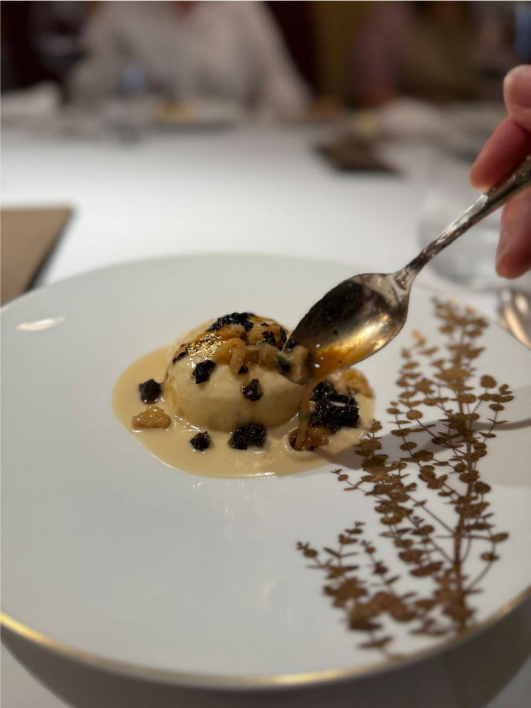 ・熟成コンテチーズのスフレ ヴァンジョーヌのソースに胡桃とトリュフ