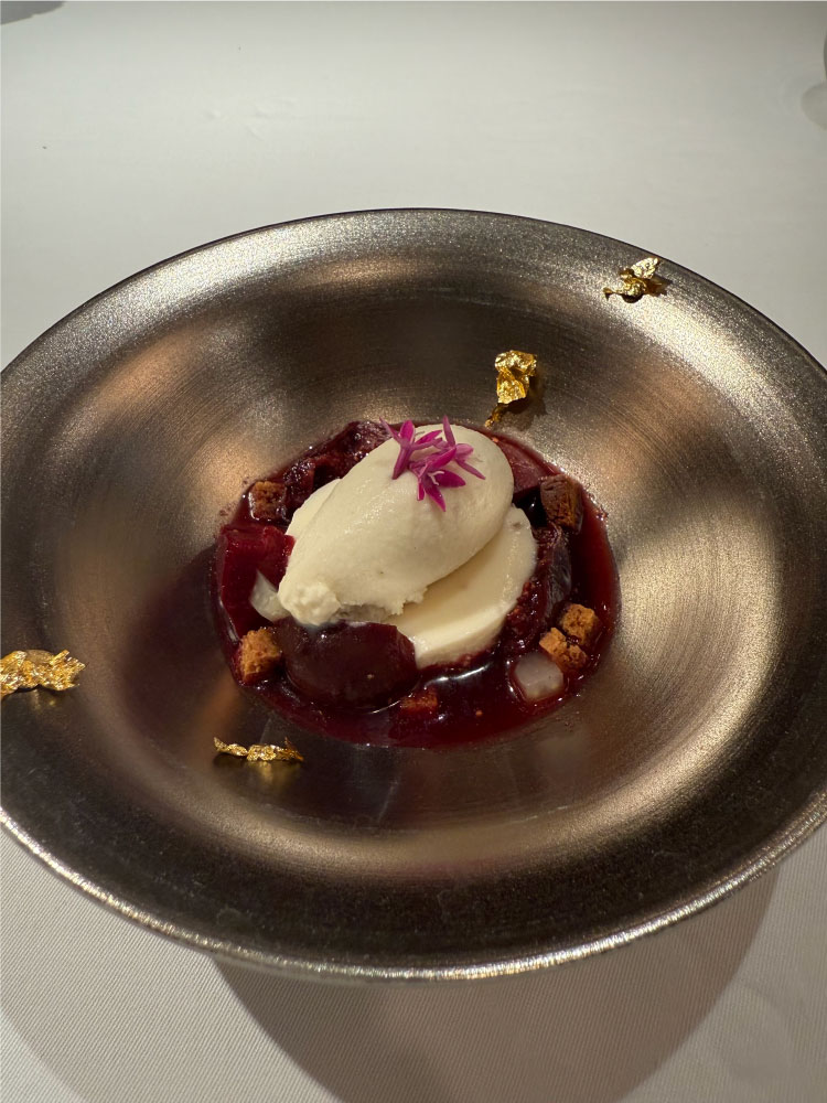 Figues noires et Pêches de Vigne au Rivesaltes épicé Sorbet Fenouil et Pastis