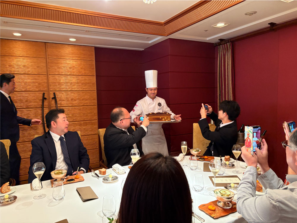 去る10月7日(火)帝国ホテル東京 レセゾンにて開催された昼食会では2024年度のパテ・クルート世界チャンピオンに輝いた真野大貴シェフと彼と共に研究し真野シェフを世界のトップに導いたティエリー・ヴォワザン料理長による特別メニューをご参加の皆様に堪能いただきました。