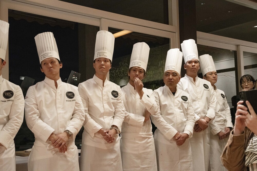 2012年世界チャンピオンヨハン・ラストル・シェフ、2017年フランス地区を代表して出場し世界チャンピオンに輝いた吉冨力シェフ、2019年世界チャンピオン、塚本治シェフ、2021年世界チャンピオン 福田耕平シェフ、2022年世界チャンピオン塩見龍太郎シェフ、そして昨年2024年世界チャンピオン、真野大貴シェフが舞台で今年のファイナリストたちを激励しました。