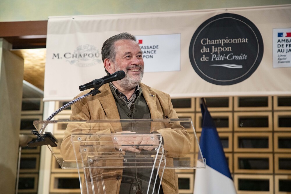 来賓としてご登壇されたミシェル・シャプティエ氏からは、パテ・クルートがシャルキュトリの中でも特にワインとの調和が重視される料理であることに触れられ、さらに来年が美食家ブリア=サヴァランの没後200年という節目の年にあたることから、フランス料理界が一層の盛り上がりを見せるであろうとの展望が語られました。