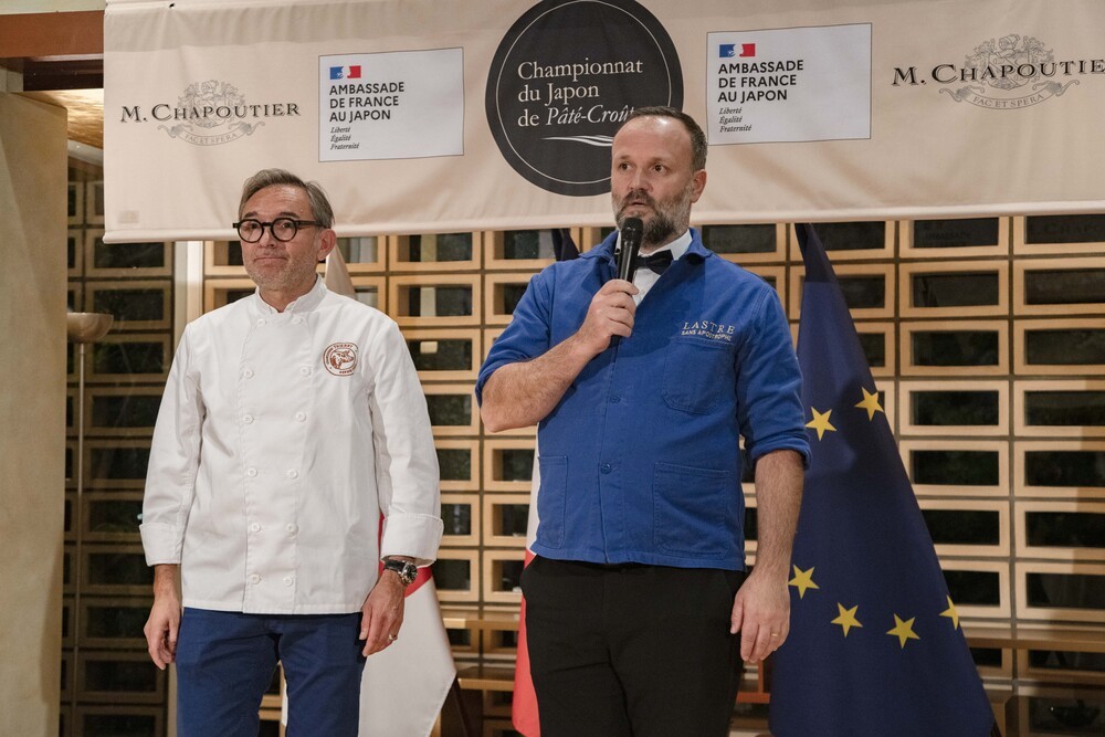 今回、フランス本国より審査員長としてご来日したのはパリの名店「ラストル・サン・アポストロフ」オーナーシェフであり、2012年パテ・クルート世界チャンピオンの栄誉に輝くヨハン・ラストル氏。そして、伝統的シャルキュトリ製法の第一人者として知られる、サント=サヴィーヌの「メゾン・ティエリー」オーナーシェフ、クリストフ・ティエリー氏。