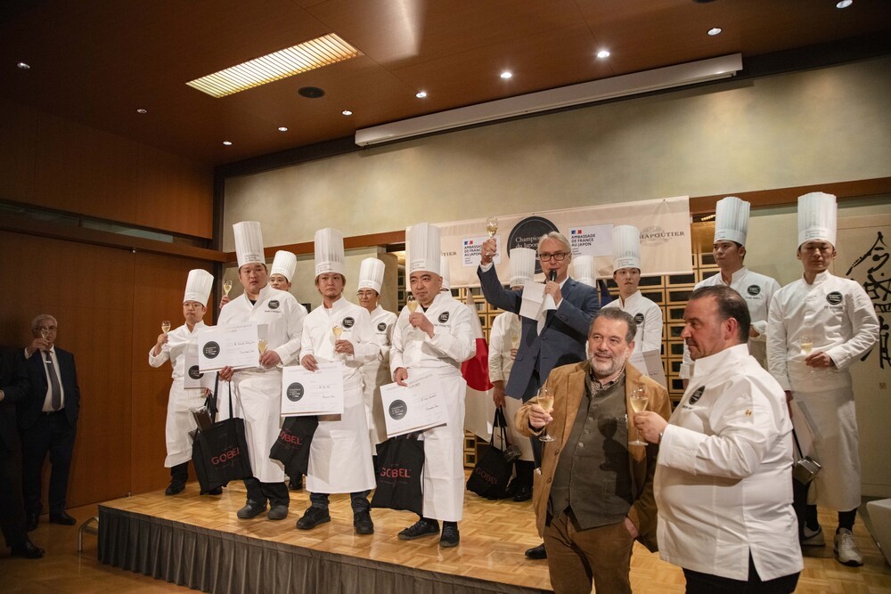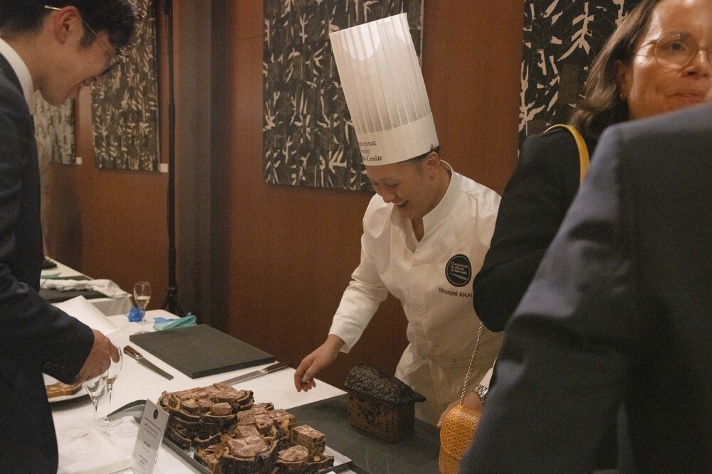 授賞式の開幕に際し、フィリップ・セトン大使は、パテ・クルートという中世シャンパーニュ=アルデンヌ地方に端を発する伝統料理が、遠く離れた日本の地においてこれほどまでに温かく迎えられ、祝福されている光景に触れるたび、深い感動と驚嘆の念を禁じ得ないと述べられました。さらに、フランス料理の中でもとりわけ高度な技術と芸術性を要するパテ・クルートのコンクールが、新たな才能の発掘と育成の場として大きく寄与していること、そしてこの催しが日本におけるフランス・ガストロノミーの発展において極めて重要な位置を占めていることを高く評価されました。併せて、ファイナリストたちの健闘を称えるとともに、審査員ならびに協賛企業の皆様の多大なるご尽力に対し、深甚なる敬意を表されました。