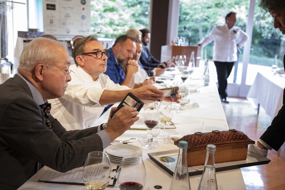 さらに、リヨンで開催される世界選手権ファイナルおよび世界各地の地区決勝戦に多大な貢献をされている、タン・エルミタージュの名門ワイナリー「M.・シャプティエ」当主、ミシェル・シャプティエ氏が名誉審査員としてご来臨くださいました。審査はフランス人および日本人著名シェフ各10名に加え、プレス審査員、特別ゲストを含む総勢25名の審査員チームにより、厳正な試食審査が執り行われました。