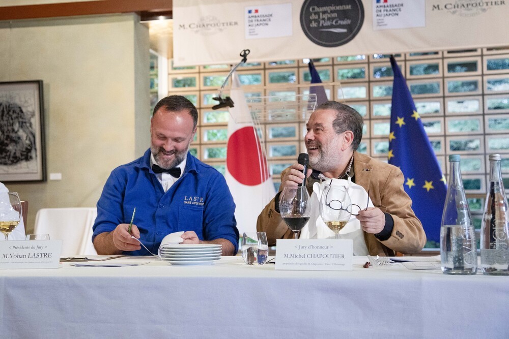 今回、フランス本国より審査員長としてご来日したのはパリの名店「ラストル・サン・アポストロフ」オーナーシェフであり、2012年パテ・クルート世界チャンピオンの栄誉に輝くヨハン・ラストル氏。そして、伝統的シャルキュトリ製法の第一人者として知られる、サント=サヴィーヌの「メゾン・ティエリー」オーナーシェフ、クリストフ・ティエリー氏。